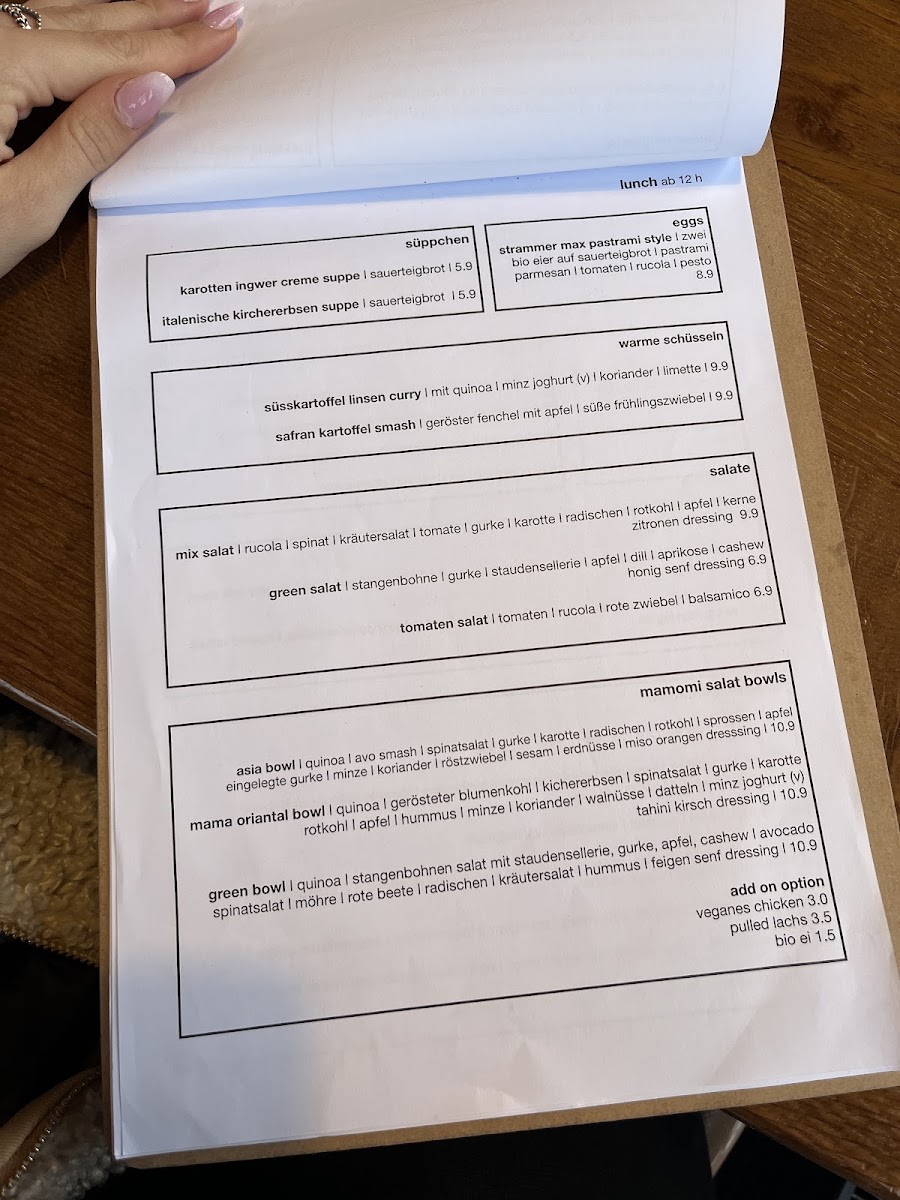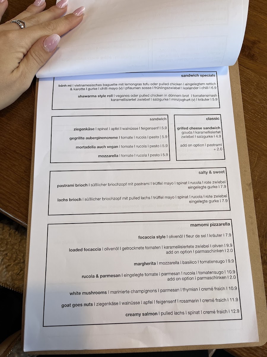 The menu at mamomi cafe weinbar studio offers a selection of coffee specialties, light meals, and a curated wine list. Visitors can expect classic and specialty coffee drinks, including options like Flat White, suitable for coffee breaks or casual meetups. The food offerings focus on breakfast and light dishes, featuring items such as the Mamomi Breakfast Plate Cheese & Avo Smash, Avocado Toast, and Asia Bowl, which cater to those seeking a nutritious start to the day or a light lunch.